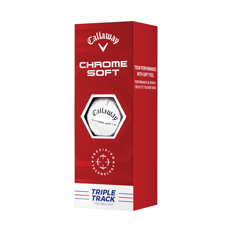 這個球改變了一切。 Chrome Soft 將巡迴賽的表現提升到另一個層次。我們重新設計了球的每個方面和元素,以提高開球速度,並使球袋中的每個球桿距離更遠。 精密科技 新的精密技術提供了最緊密的分散、一致的快速球速和整體性能。我們增強了每個組件和設計功能,以創造出最高品質的高爾夫球。 施工優化 全新超彈性 SoftFast 核心可實現巡迴賽等級的速度、旋轉和通過球袋的控制。 新旅行航空 採用我們的 Tour Aero 設計,在任何條件下都能保持一致的球飛行。 來自三軌技術的高級對準 我們在球上突出採用了 Triple Track 線,以提高推桿準確性。與常規側印對齊輔助工具相比,Triple Track 使用 Vernier Hyper Acuity 來改善對齊。 為什麼 Chrome Soft 如此獨特以及它的用途是什麼? Chrome Soft 專為想要出色手感、出色距離和令人難以置信的容錯性的廣大高爾夫球手而設計。主要性能特徵包括我們標誌性的鍍鉻柔軟手感、更遠的開球距離、低旋轉鐵桿擊球以及高水平的果嶺控制。 INTRODUCING CHROME SOFT TRIPLE TRACK Precision Technology New Precision Technology delivers our tightest dispersion, consistently fast ball speeds and total performance. We’ve enhanced every component and design feature to create the highest quality golf balls. Construction Optimization New Hyper Elastic SoftFast Core for Tour level speed, spin, and control through the bag. New Tour Aero Consistent ball flight at every condition with our Tour Aero design. Advanced Alignment From Triple Track Technology We’ve prominently featured Triple Track lines on the ball for improved putting accuracy. Triple Track uses Vernier Hyper Acuity to improve alignment compared to a regular side stamp alignment aid. Why Is Chrome Soft Unique and Who’s It For? Chrome Soft is designed for a wide range of golfers who want outstanding feel, excellent distance, and incredible forgiveness. Key performance characteristics include our signature Chrome Soft feel, more distance off the tee, low spinning iron shots, and a high level of greenside control.